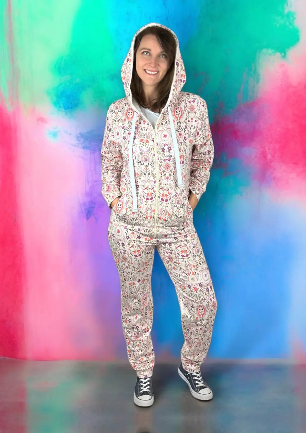 Entdecke jetzt unser Schnittmuster für den figurbetonten und dennoch bequemen Jumpsuit "Alexandra", mit dem du im Handumdrehen vollständig angezogen bist! Dieser Jumpsuit verfügt über eine weite Kapuze mit Kordeln, einen langen Reißverschluss für müheloses An- und Ausziehen sowie praktische aufgesetzte Eingrifftaschen, um deine Hände schön warmzuhalten.