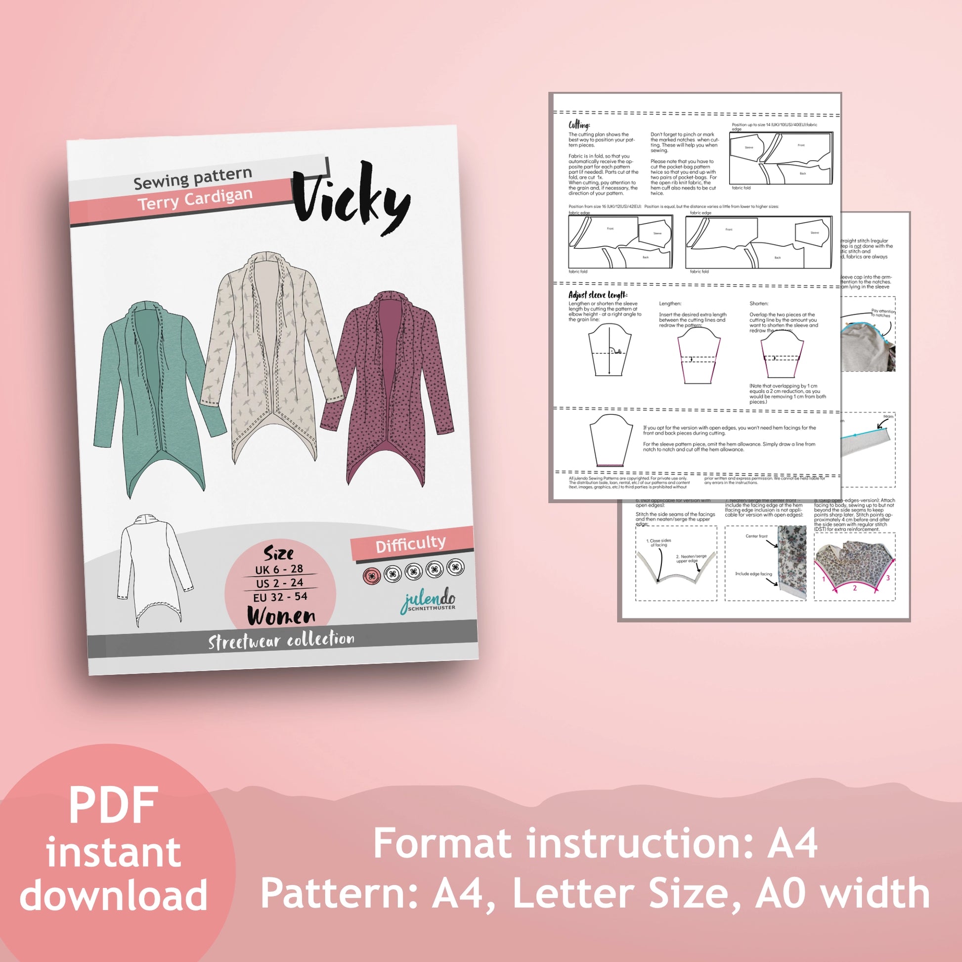 PDF Sewing pattern sweat cardigan "Vicky"