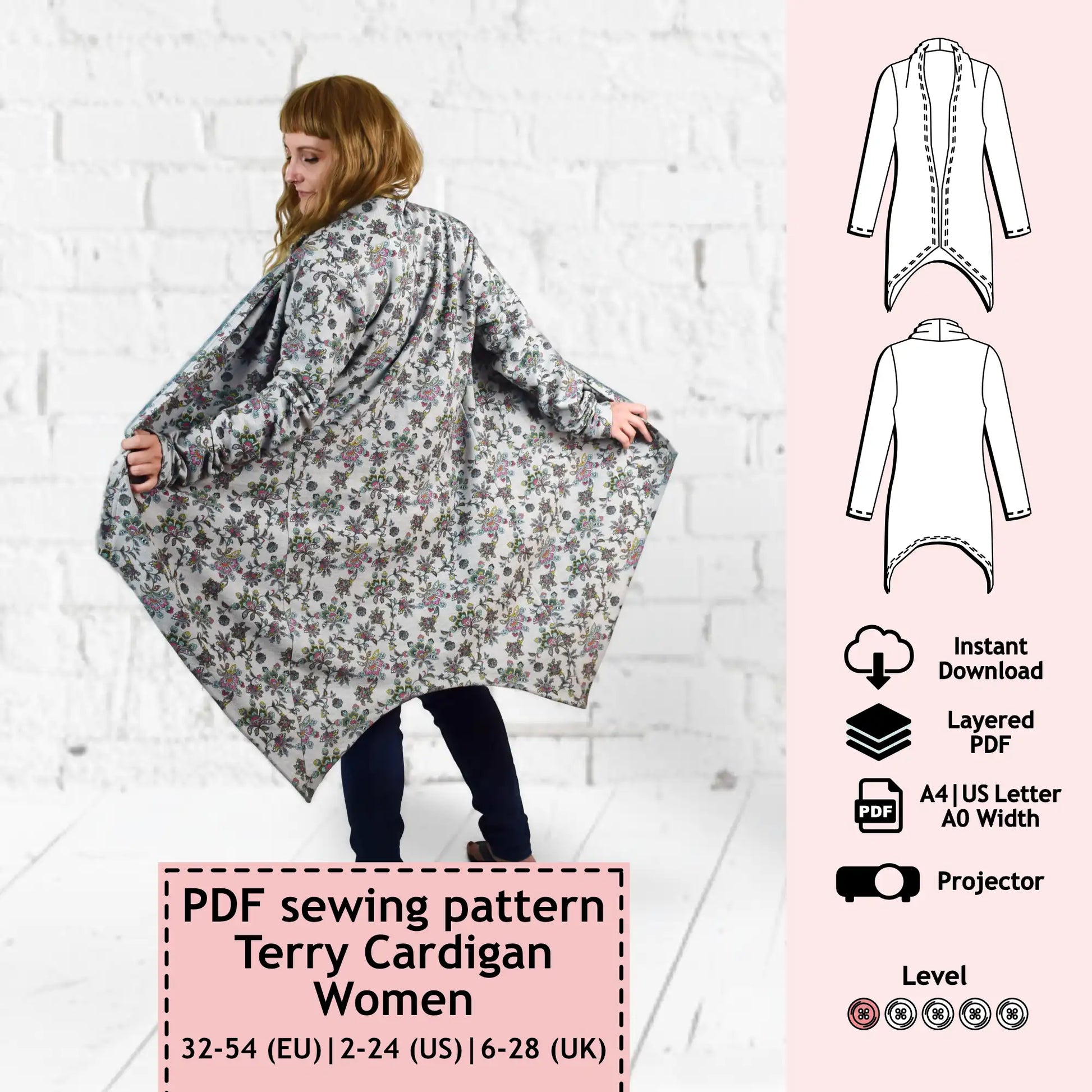 PDF Sewing pattern for sweat cardigan "Vicky"