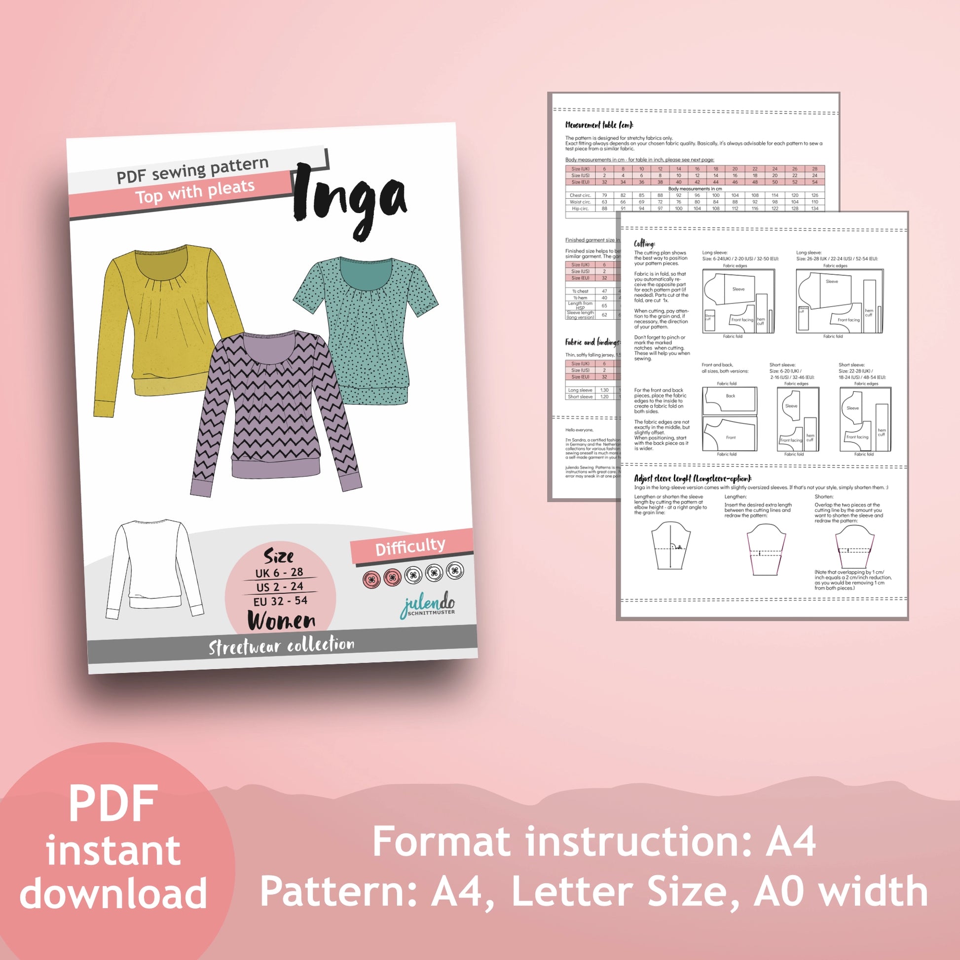 Top with pleats sewing pattern for women - great for advanced beginners or experienced sewists!